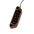 Den træbeklædte stikdåse er af stiktype K, som er den standardiserede stiktype i Danmark.